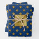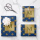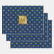 Gold Cruciferous Flowers Monogrammed Blue Wrapping Paper Sheet