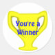 Fun teacher's reward sticker done in a round shape, with a white background and a yellow gold cup. Blue text, across the cup, reads You're a Winner. Customise the text to read anything you want. Great for any age school child.