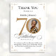 Gold Custom Photo 70th Birthday Thank You Card