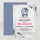 Gold Cute penguin Blue flower baby shower kids Invitation
