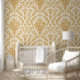 This wallpaper features a stunning gold floral damask pattern, perfect for adding a touch of elegance and sophistication to any room. The intricate design creates a luxurious ambiance, making it an ideal choice for those seeking a timeless and visually captivating wall covering.