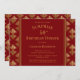 An elegant red and gold damask patterned surprise 50th birthday dinner party invitation.