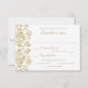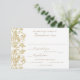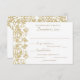 Romantic gold and white damask wedding invitation response card with bride and groom's names and wedding date on reverse side.