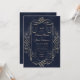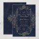 beautiful golden ornaments on deep blue background for a sophisticated wedding invitation paired with elegant font
