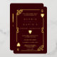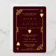 It features vintage art deco style, a Roaring 1920's old Hollywood broken frame with faux gold foil Fleur-de-lis, hearts, Q and K on two corners (simulating playing cards), on royal deep burgundy background. Special wording are used as in poker game. Use Personalize tool to add your information. For more, visit please, my Casino Deep Burgundy Collection.