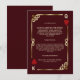 Unique Casino Royale and Great Gatsby themed card design. It features vintage art deco style, a Roaring 1920's old Hollywood broken frame with faux gold foil Fleur-de-lis, red hearts, Q and K on two corners (simulating playing cards), on deep burgundy background. Use Personalize tool to add your information. For more, visit please, my Casino Deep Burgundy Collection.