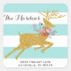 Beautiful trendy gold glitter deer with watercolor flowers adorning it's neck. Blue and white striped background with personalised name and address. These modern Christmas address label stickers are sure to brighten your holiday!