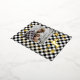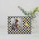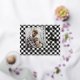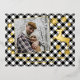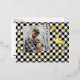 Unique, classy, trendy, pretty and decorative seasonal Christmas Holiday and Happy New Year greetings card. With room to customise or personalise with a photo, family name or names, and text of your choice. Cute golden snowflakes pattern and jumping deer design, on a traditional white and black coloured Buffalo Lumberjack chequered plaid background. And a customisable season greeting poem on the backside of the card, including your return address, city, zipcode and state.