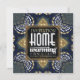 Gold Denim Mosaic ~ mix of metallic gold and denim textures, geometric, Mediterranean mosaic inspired - All occasions design suitable for House warming, BBQ party, New home and get together with friends, birthdays or any other special occasion or event.