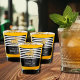 Elegant shot glasses feature your personalised text and a faux gold glitter race horse on black and white stripes. Fill with candy and wrap with cellophane and a ribbon to give out as party favour keepsakes or pass out shots at your event. MATCHING items in our store.
