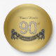 Gold 90th birthday party paper plates with pretty gold diamond numbers and black and gold banner on a rich gold background. You can personalise these 90th birthday party paper plates with a name or other text of your choice.