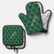 Gold Diamond Dark Emerald Green Custom Name Oven Mitt & Pot Holder Set