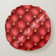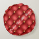 Gold Diamond Tufted Leather Your Text Name Red Round Cushion