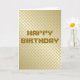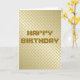 This cool birthday card features a realistic, bright and shiny gold diamond plate background and "Happy Birthday" in a bold, deep gold lettering. The lettering even includes screw marks to complete the masculine, industrial look. This birthday card is perfect for the guy who spends his time in the garage or workshop. Inside is left blank for your own custom message. Customise this card for a personalised birthday card.