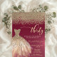 Gold Diamonds,Elegant Dress Burgundy 30th Birthday Invitation