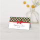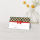 Gold Look Herringbone with DIY Background Colour (Initially set to black), Choose Your Colour Satin Look Bow (Initially set to Red) - Escort Cards / Place Cards / Tent Cards