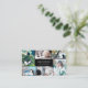 Flat business card for a professional photographer, where you can showcase your work in a photo collage with room for six of your photos. Add your name and specialty or title or service on the cover. Add your contact information on the back, which is decorated with faux gold confetti. An elegant, minimalist business card in black and white, perfect for a wedding photographer.