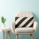 Chic throw pillow with elegant gold dots on black and white striped background.