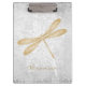 Jot down notes and reminders on a secure surface with a Gold Dragonfly Personalised Clipboard. Clipboard design features a colourful dragonfly, a soft white leafy vine against a light grey grunge damask background with an area to personalise with your name. Additional gift items available with this design as well as a variety of colours.