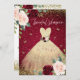 Gold Dress Burgundy Red Floral Bridal Shower Party Invitation