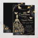 Gold Dress,Butterfly Black Roses Quinceañera Invitation