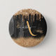 Gold Dripping Glitter Monogram Custom Metallic 6 Cm Round Badge