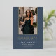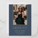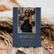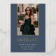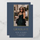 A simple and elegant graduation announcement design for high school, college or advanced degree graduations, featuring a vertical photo aligned at the top and trimmed with gold foil on a dusty blue background. Personalise with your graduate's name, school, and graduation year. Add a personal message to the back, along with an additional photo.