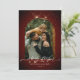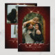 Gold dust against festive cranberry red creates an outstanding Merry Christmas holiday with a swirling handwritten calligraphy script. Easily replace your family details, including 3 pictures to make it your own.