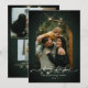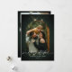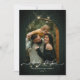 Gold dust against festive pine green creates an outstanding Merry Christmas holiday with a swirling handwritten calligraphy script. Easily replace your family details, including 3 pictures to make it your own.