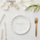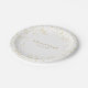 GOLD DUST CONFETTI WEDDING PAPER PLATES. Beautifully personalised with your names and date in faux gold on a delicate gold dust confetti background. Designed by Pure Piglet© at www.zazzle.com/purepiglet*.