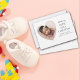 A simple modern birth announcement featuring a heart photo frame with a gold edge. Customisable.