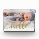 Gold Effect Script Lettering "Hello" Baby Photo Block