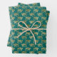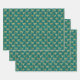 A trio of wrapping paper sheets with the Gold Eye of Horus Egyptian symbol pattern on teal background. Use for gift wrap, decoupage, scrapbooking or other paper crafts!