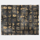 This cool and unique custom blanket features an ancient Egyptian art theme. A pattern of gold hieroglyphics are printed on a black textured background. A sample monogram initial is placed in the centre of a gold frame.