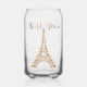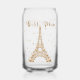 Gold Eiffel Tower, gold letters on a bed of tiny gold stars Birthday or any occasion. Style: Printed Can Glass.