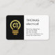 Overleaf, in a black cover brought over from the front, card details are on the left side. At the top is the gold lightbulb logo you can use followed by your prestigious name and the contact details.