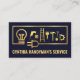 An all blue cover features a faux gold electrical circuit frame that envelopes an array of gold handyman tools. The tools can represent some of the services that you offer. Near the base is the business name which you can change.
