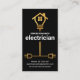 Near the top of the card lies your prestigious name and the job title 'electrician' which you can change to suit your own service needs. Towards the base are the contact details and a slogan caption option to publicise your services.