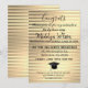 On this elegant gold grad invite are gold stripes on a gold shimmery backdrop that makes the black script pop. Glam stylish vibes.