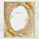 An elegant gold card with flying turnoff gold corners and gold cream roses for a chic wedding or any other event card design to personalise