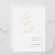 Elegant script minimalist typography design in gold foil, black and white, with couple photo on the back, modern and simple. Great minimalist save the date cards for modern wedding and other events.