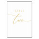 Our elegant gold calligraphy script table number is perfect for your wedding! This double-sided (front and back) table number card features beautiful & elegant faux gold foil typography on a modern, minimalist background. Each table number sold separately. *This design is a high resolution graphic image, created to simulate gold foil, not actual gold foil.