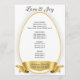 A minimalist, elegant Menu for your Easter Brunch or Dinner Party, featuring a gold-tone Easter Egg with an elegant silk ribbon banner.