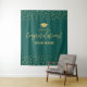 This modern tapestry is perfect for a emerald green and gold colour theme graduation party. Perfect photo backdrop to remember your special day. The design features golden typography " Congratulations! " and a graduation cap with confetti background. You can personalise the text. If you need a custom design, please contact me via email [barabomdesign@gmail.com] Thank you!