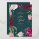 Are you planning a romantic, rustic, country or barn wedding? The emerald green background brings out your details in gold and flowers in red and pink. The watercolor floral greenery white flowers give your wedding invitations a special shine