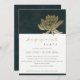 GOLD EMERALD GREEN LOTUS FLORAL ENGAGEMENT INVITE