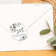 Elegant eucalyptus greenery with gold circles framing script and classic typography wedding thank you seal sticker.