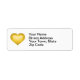 This return address label features a gold heart with a white-washed centre.