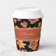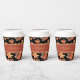 Enjoy hot cocoa and cider this autumn in our Gold Fall Leaves & Terracotta Stripe Custom Black to-go travel paper cups featuring a botanical watercolor illustration of golden maples leaves turning beautiful shades of rust, orange, yellow, terracotta red, tan and brown! All text can be updated to create a custom accent, perfect for your thanksgiving gathering, pumpkin harvest or by the bonfire in your backyard, park or picnics.