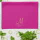 Gold Family Name Monogram Viva Magenta Solid Colou Tea Towel